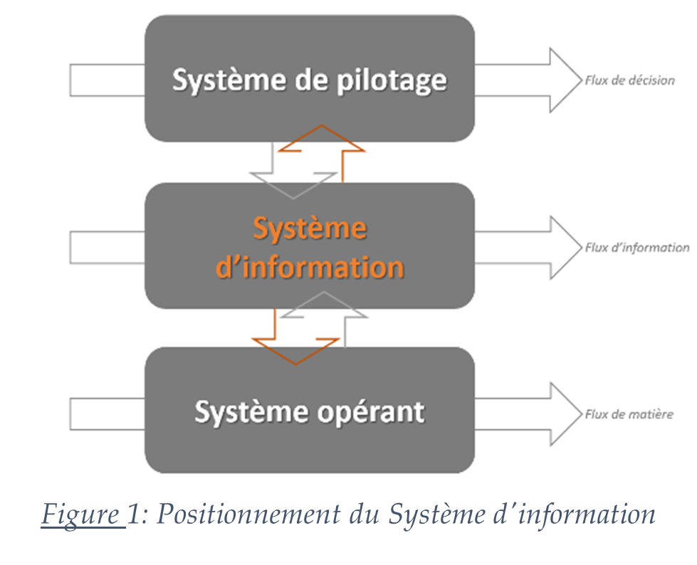 Un système opérant : endroit où les activités et les moyens permettent à une organisation de transformer et de produire de la matière. Et le système d’information dans tout çà ? Il soutient ces deux systèmes pour qu’ils puissent bénéficier de la bonne information au meilleur moment au bon endroit de l’entreprise dans l’intérêt de leur mission.