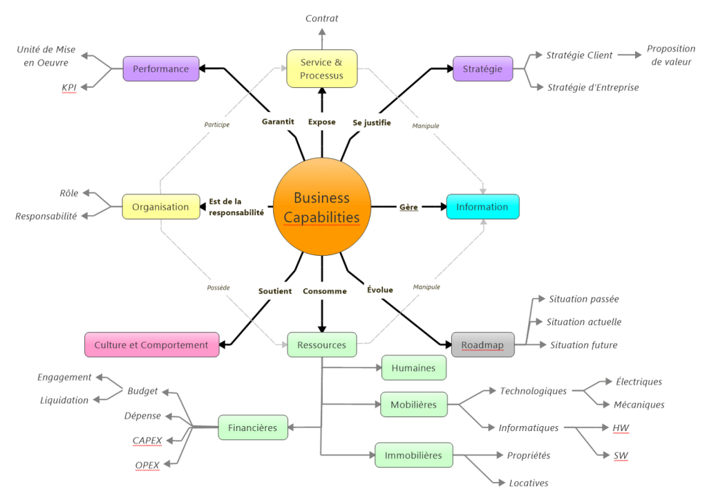Il est évident que ces 3 points ci-dessus sont très réducteurs et demandent plus d’explications. Mon objectif ici est de vous donner un sens à la notion, voire au concept – si vous souhaitez modéliser – d’une capacité métier (Business capability). J’espère seulement que vous percevrez dorénavant mieux les nuances de la définition (cfr article Modéliser les business capabilities) :